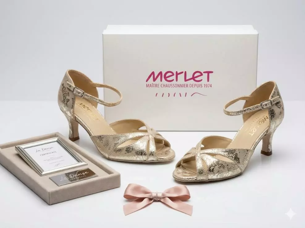 Nos chaussures de danse de salon MERLET sont renommés pour leur confort, stabilité et durabilité! Toutes nos chaussures de danse de salon peuvent être adaptées pour une utilisation quotidienne. RDV chez votre cordonnier pour l’adaptation de la semelle pour l’extérieur.