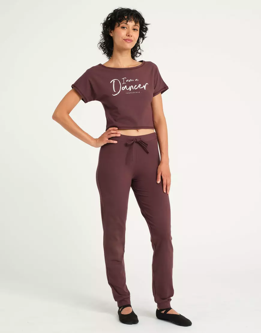 Pantalon en coupe jogging unisexe. Idéal pour la danse, le yoga et le pilates. Resserré en bas pour mettre en valeur le travail des jambes. Ceinture élastique avec cordon de serrage pour un bon maintien. Volume flou et tissu extensible pour un grand confort.